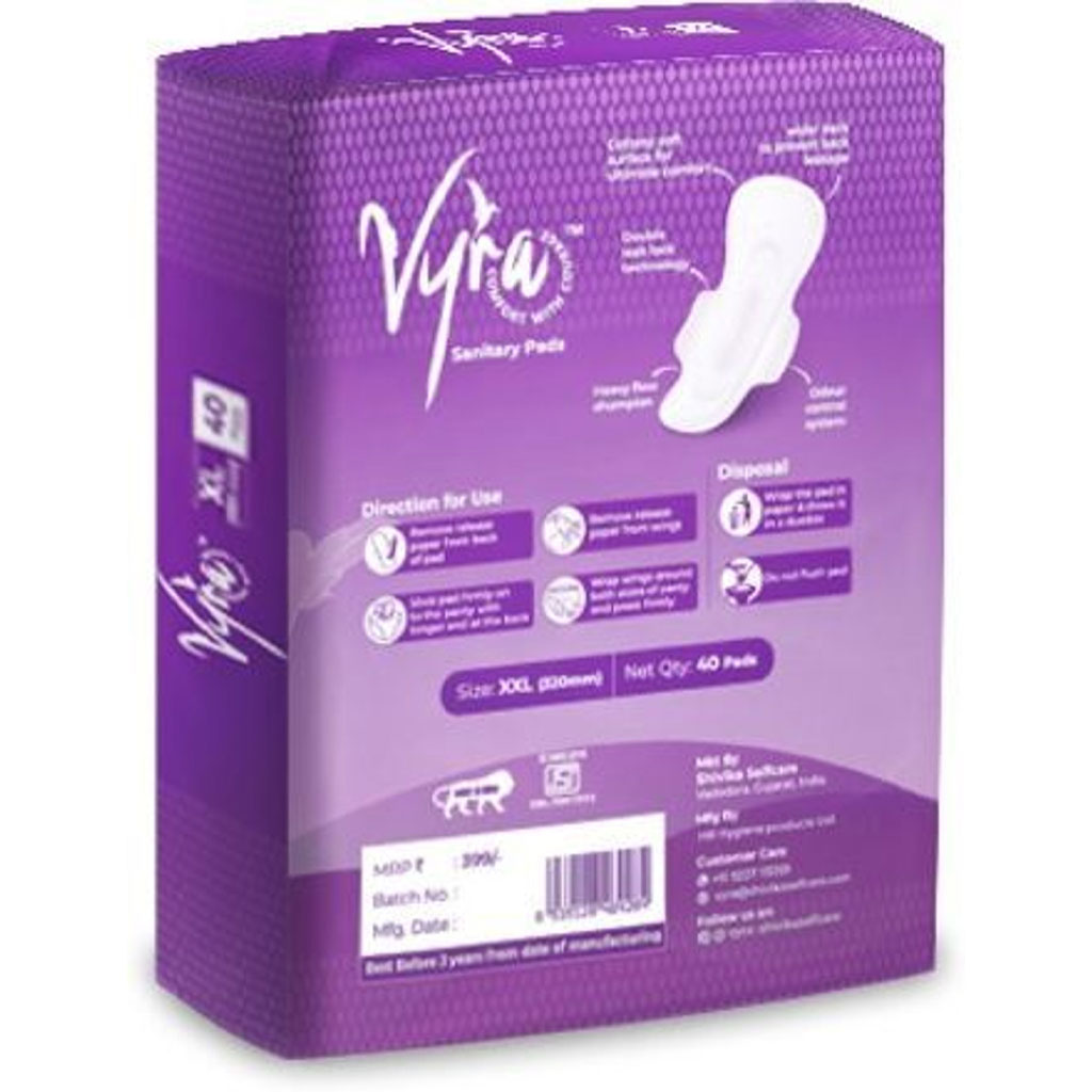 VYRA Ultra thin_ Cottony comfort_ XXL _40 Pads_100% leakage Protection & Rash free Sanitary Pad (Pack of 40)
